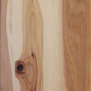 Hickory is an extremely dense hardwood making it great for shock resistance. Hickory’s color can vary from a fairly red heart wood to lighter tan and sandy white sapwood. Its grain pattern can range from dull to sharp and defined. Its sporadic coloring is something to note as it is rarely uniform and can warp the look of certain finishes. Natural finishes can accentuate its grain pattern and natural blemishes, lending itself to rustic styles.